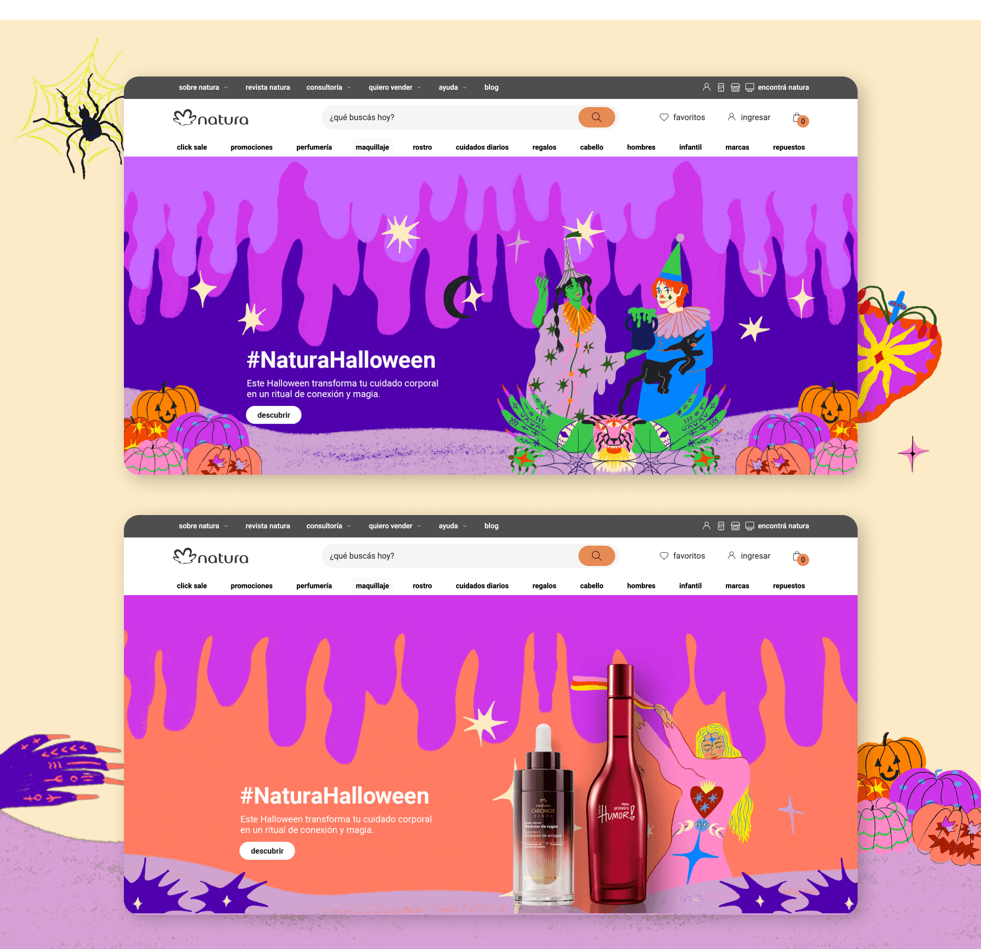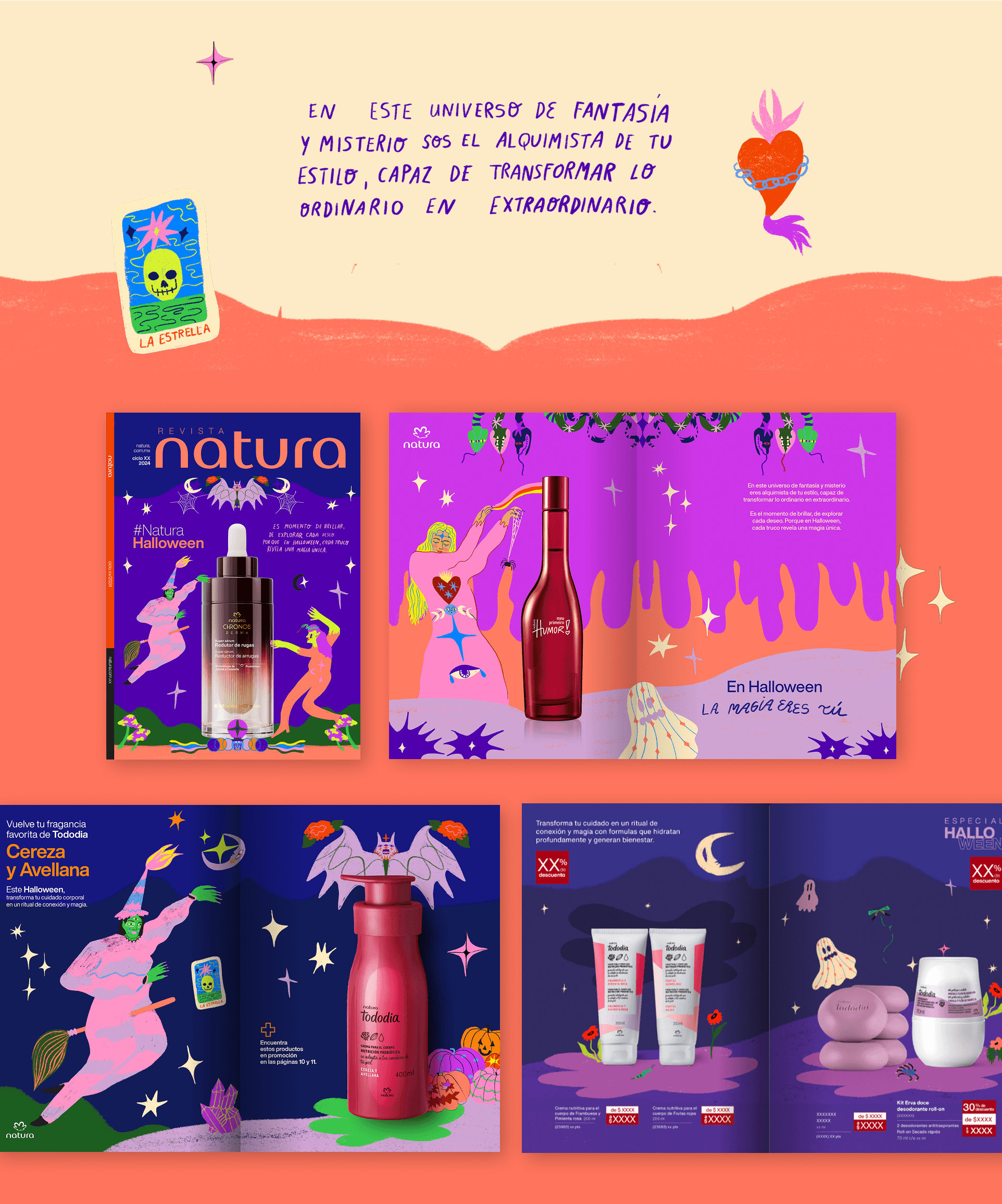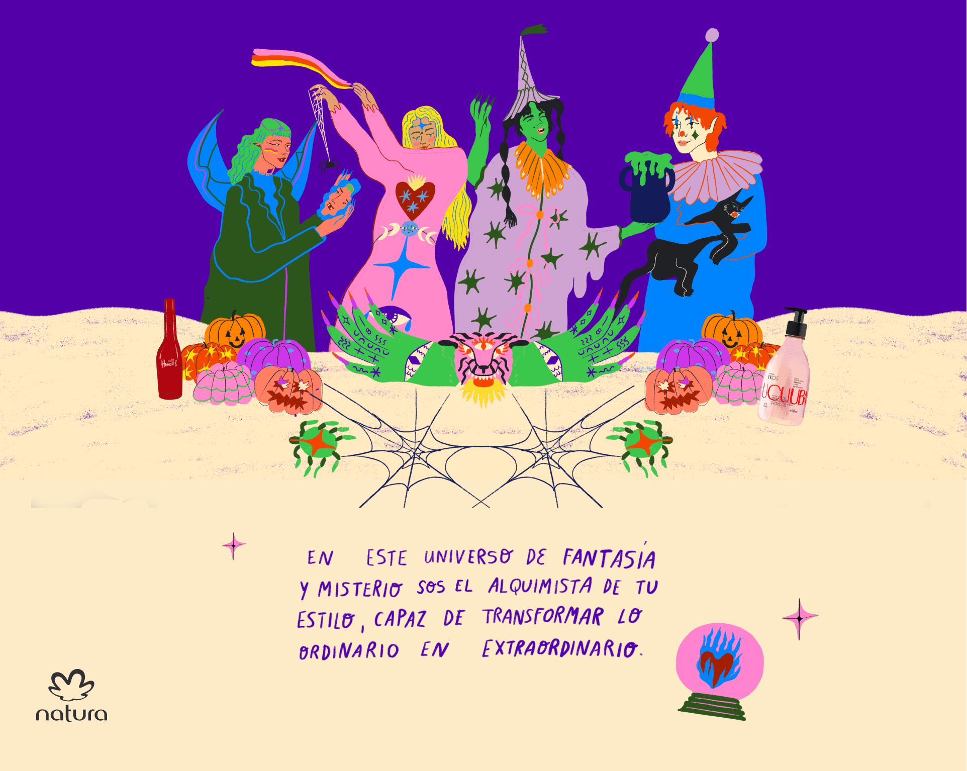 Desarrollamos el concepto creativo y la identidad visual para la campaña de Halloween de Natura, creando un universo visual que combina lo lúdico y lo sensorial.